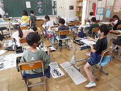 毛筆の学習は3年生からなので2年目です。子どもたちは,通塾の子以外は