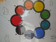 気づく学習です。どの子も3色を使い分けながら,上手に9色の色が作れました。