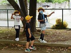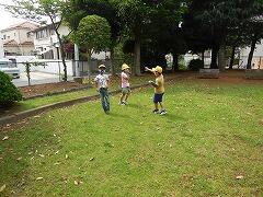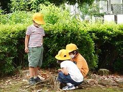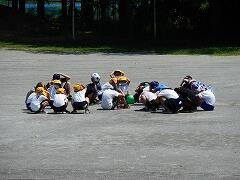 運動場で遊んでいた子は,真ん中に集まり,姿勢を低くしました。