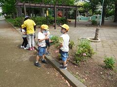 公園では,植物や小さな生き物をiPadを使って撮影しました。