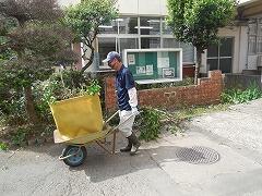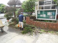 今日,教頭先生と業務員の神林さんが,木々の剪定や下草の仮払いをしました。