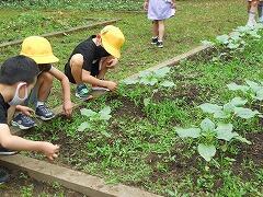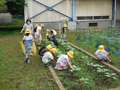 1年生ヒマワリの雑草とり(校長ブログ)
