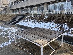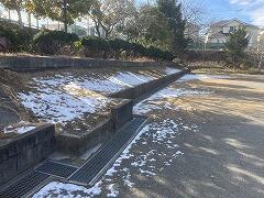 日の当たらない校庭北側の斜面には,1月2日夜に降った雪がまだ残っています