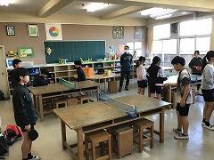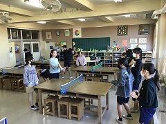 バドミントンクラブは体育館がエアコン設置工事で使用できないため,図工室で卓球を楽しみました<科学クラブ・バドミントン(卓球