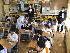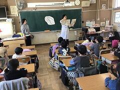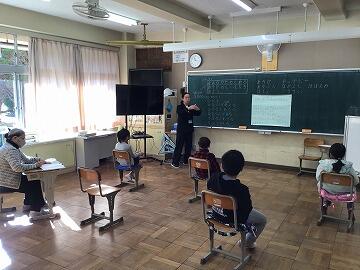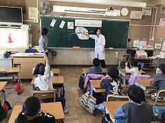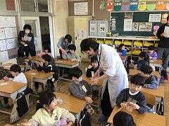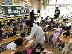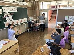 5時間目には1年生で,栄養士の栗原先生による食育授業「めざせ!おはしめいじん」が行われ,正しいおはしの使い方について実技も交えて学習しました