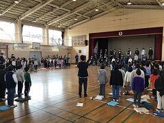 いよいよ3月に入りました6年生は明日から始まる卒業式練習に先立って,朝の会を体育館で行っています