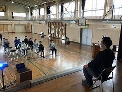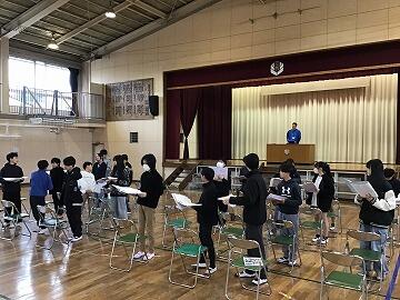 6年生は体育館で,教務主任から卒業式への心構えのお話があり,自分たちでめあてを決めてから起立・着席,姿勢のよい椅子の座り方など,基本練習に臨みました。小学校最後の「授業」となるので,みんな真剣な表情でした