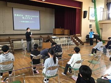 もうすぐ富勢西小を卒業する6年生への感謝の気持ちを伝える「旅立ちの集い」が2・3時間目に体育館で開催されました全校児童が集まる最後の大きな児童会行事です