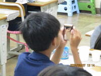 お椀に,出来た味噌や鰹節,おふを入れてお湯を注ぎ,みんなでさっそく試食をしました。味噌の風味がよく感じられ,とってもおいしかったです。ごちそうさまでした。