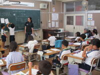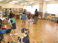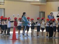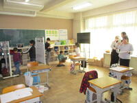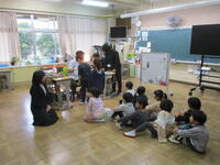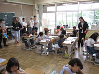 1つ目は,全学年を対象に,「柏市小学校国際交流会」を実施しました。柏市の小・中学校に勤務されているALTの先生方が,5人ほど本校にお見えになり,子どもたちと外国語のゲームを通してふれあいました。