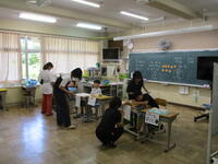 暑さが厳しい中,家庭科の裁縫学習のために,保護者の方や地域の方がサポートに来てくださいました。初めての手縫い学習ですが,前回よりもぐっと上達している様子が見られ,成長を感じました。担任だけではなかなか大人数を指導することが難しい時もあります。今日も心強いサポート体制のおかげで課題を終了する富西っ子が多くいました。ご多用の中,本当にありがとうございました。