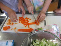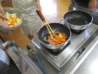 子どもたちが楽しみにしている調理実習。コロナ禍では,家庭科で学習する調理実習が実施できないなど,苦労した時期もありました。今日は,6年生が「野菜炒め」と「卵料理」に挑戦。班の仲間と楽しく,協力して安全に学習をすすめることができました。調理した「野菜炒め」 おすそ分けにあずかり,ありがとうございました。ごちそうさまでした。