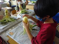 4年生となかよし学級の富西っ子たちが,トウモロコシの皮むきをしました。皮むきに初めて挑戦する子どもたちも多く,貴重な体験をすることができました。トウモロコシは,ポップコーンや穀物,家畜の飼料など,用途によって品種が異なります。夏から初秋にかけて収穫される夏野菜です。この時期しか味わえない,旬のトウモロコシ。今日は,蒸していただきました。甘くておいしかったね。ごちそうさまでした。