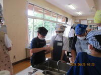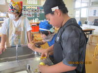 1時間目に,なかよし学級と5年生の富西っ子たちがトウモロコシの皮むきを体験しました。皮をむいた時の青臭さを感じたり実の重さを量ったりと,皮むきの体験を通してさまざまなことを学びました。給食の献立の一品として,全校のみんなに提供されます。