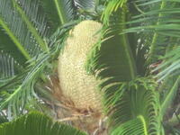 職員玄関前のソテツが花を咲かせました。ソテツは恐竜時代に栄えた植物だそうです。雌花と雄花では形状が違いますが,今回花を咲かせたのは雄花です。10年~15年に一度しか花を咲かせない,大変珍しい花だそうです。そのため,目にすると「幸運を呼び込む」ともいわれているそうです。