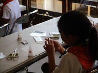 熱中症警戒アラートが発令される中,「千葉県立 房総のむら」に出かけてきました。今日のめあては,熱中症に気をつけながら活動をすることでした。体調を崩す児童もなく,大きな事故やけがもありませんでした。江戸時代から明治時代にかけての千葉の農家や街並みの様子を見学したり,体験活動として,「千代紙ろうそく」や「どろめんこ」づくりに挑戦しました。