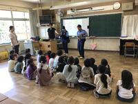 本日の3校時に,1年生を対象にした防犯教室を行いました。1年生のみなさんは,柏警察の方の話を一生懸命に聞いていました。「イカのおすし」や「はちみつじまん」などわかりやすい合言葉を教わり,防犯の意識を高めていました。また,実際に自分の防犯ブザーが正常に鳴るかをチェックしました。防犯ブザーは電池で動いていますので.,お子様とご一緒に定期的に確認してください。