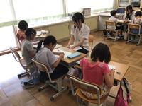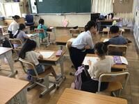 4年生は,版画家の大野隆司先生をお招きして,「版画教室」を実施。彫り方や刷り方のコツを教えていただき,作品の完成が楽しみです。2年生は,算数の学習。みんな集中して授業に臨むことができました。廊下を歩いていると,トイレ清掃ボランティアの保護者の皆さまが,汗びっしょりになりながら,トイレをピカピカにしてくれました。暑い中,本当にありがとうございます。