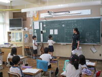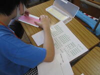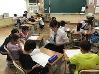 夏季休業になって5日目。今日から26日(金)までの3日間,県立柏高等学校の生徒の皆さんを特別講師として,「算数教室」を実施しています。毎年夏休み,算数の基礎的なことを中心に,高校生のお兄さんお姉さんに指導をいただいています。富西っ子たちも目を輝かせ集中して学んでいる様子があります。