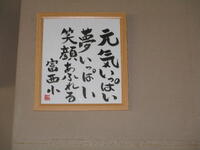 これは,以前,富西小に勤務されていた教頭先生(その後,市内他校の校長先生としてご退職)が考えたスローガンです。目指す学校の姿として,代々引き継がれています。過日,スローガンを考えてくださった方に「直筆で書いていただいたものを教室に掲示したい。」とお願いしたところ,快く引き受けてくださり,先日各教室に掲示をすることができました。我々教職員も,スローガンに込められた願いを胸に秘めながら,子どもたちのために日々精進してまいります。