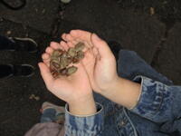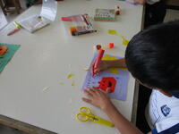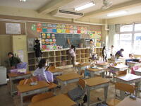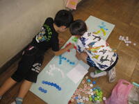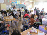 1年生が富勢小に出かけてきました。「幼保こ小」の交流活動として,富勢小学校と富勢西小学校の1年生が,学習して作成した秋のおもちゃで,小学生はお店を担当し,幼稚園や保育園の園児たちに遊びを体験してもらいました。小学生同士も交流し,自分達とは異なる発見をする等,秋の木の実や葉っぱを使った秋遊びを十分に楽しむことができたようです。