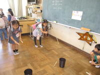子どもたちは,初めて触れる遊びに興味津々で地域の方々の丁寧な指導のもと,楽しみながら挑戦していました。昔の遊びを通じて地域の歴史や文化に触れる貴重な時間となりました。
