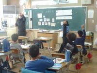 快晴の寒空の中,2年生が生活科の授業で,「町たんけん」に出かけました。2年生を3グループに分けて,富勢地区にある,商店や学校,会社,工場,交番,公共施設などに徒歩で出かけました。たんけん先では,見たり聞いたり,インタビューしたりと進んで学習を進めることができました。2年生の各グループには,地域や保護者の皆さまが付き添ってくださいました。たくさんの地域や保護者の皆さまのお陰で,安全に実施することができました。