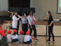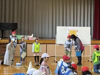 6年生の卒業をお祝いするために,全校児童で「旅立ちの集い」を行いました。新旧児童会役員の引継ぎ式の後,各学年からは,「感謝」「ありがとうの気持ち」「応援メッセージ」等を寸劇や映像,歌声に託して6年生に伝えました。ご招待した地域の皆様にも,1年間お世話になったお礼を子どもたち全員で伝えることができました。昼休みは縦割り学級で,おもいきり体を動かしました。