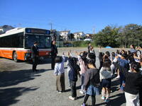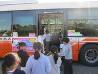 2つ目は,2年生を対象とした「バスの乗り方教室」です。東武バスの社員の方をお招きして,路線バスの乗り方や運賃の支払い方,乗車中のマナー等,社会生活を送るうえで大切なことを教えていただきました。本物の路線バスが,校庭に停車していたので,子どもたちもビックリ!でした。