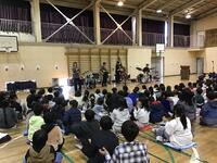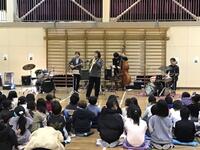 ジャズバンド「M o r n i n g u C h i l d」をお迎えし,3校時体育館で実施しました。次世代を担う子どもたちが音楽を身近に感じることができる機会を提供することにより,豊かな感性や創造性を育むことをねらいとしています。