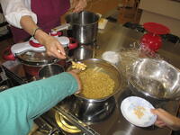 以前,富西日記でもご紹介させていただきました,「味噌づくり」。味噌の完成まで,本来なら半年から1年程かかるのですが,料理研究家 大瀬 由生子先生の工夫により,わずか3か月で完成しました。まだ,熟成がさほど進んでいない若い味噌ですが,容器のふたを開けた瞬間に味噌の良い香りが教室中に漂い,子どもたちも大はしゃぎ。