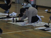 今日は,書き初め会が行われました。冷たい体育館の床に新聞紙や書初め用紙を広げ,冬休みの練習の成果を発揮すべく,どの富西っ子もみんな真剣な面持ちで臨む姿が見られました。休み中の成果が出ており,12月よりも立派な字で書き上げられていました。また,書き初め後の後片付けや掃除までしっかりと行う姿に感心しました。1・2年生は各教室で取り組みました。来週は,校内書初展(15日・16日)を予定しております。ご来校いただければありがたいです。