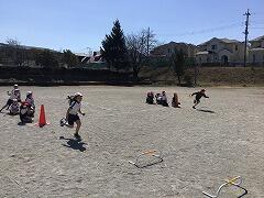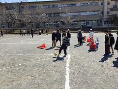 5・6年生は卒業式練習を終えた後に,合同レクでキックベースを行いました