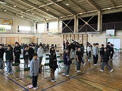 来週3月17日(火)の卒業式本番に備えて,卒業式の予行演習を実施しました。当日と同じ日程で,卒業生の入場から証書授与,校長式辞,記念品贈呈,呼びかけや合唱,そして退場まで一通りを本番同様に行いました。