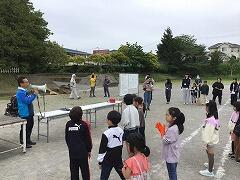 外では,体育館冷暖房設置工事で大型クレーン車が入っての室外機設置作業が行われていて,クレーンの高さに「すごーい!」と見上げている富西っ子たちでした(リアル「はたらくじどうしゃ」←1年生国語教材)