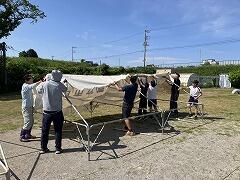 一方,先月使用できなかった体育館では,ついにエアコンが設置されました