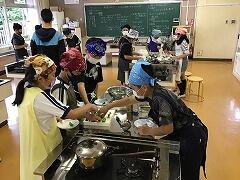 おかわりは全てじゃんけん大会で,もらえる人を決めました先生方もから揚げやデザートを狙って,子どもたちと一緒に「じゃんけーん,ぽい