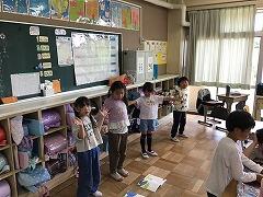 今日は水曜日なので,先週に続いてフッ化物洗口のブクブクうがいから1日が始まりました。(水曜日はフッ化物洗口の時間があるため,日課が少しだけ変更となっています。)