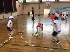 ほほえみ1組は国語「ごんぎつね」,1年生は体育でニュースポーツ「はしごドッジボール」に取り組みました
