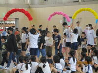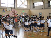 入場の後,児童会役員の5・6年生がリーダーとなり,「富西〇✖クイズ」「猛獣狩りをしようよ」のゲームを