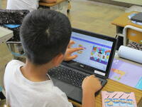 今日は4年生の子どもたちが,「総合的な学習の時間」にプログラミングについて学習していました。プログラミングは,携帯アプリやPCソフト,家電やゲーム,企業等が使っているシステムなど,さまざまなものに使われています。