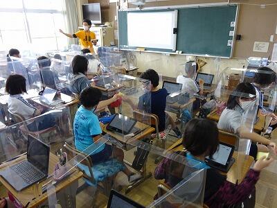 「まん延防止等重点措置」が再発令されるなど,計画の前提が次々と変わる中,先生方は授業スタイルを工夫し,子供たちの活動が中心となる授業を行っています。富勢地区3つの小学校による交流会(特別支援学級)は,リモートで行いました。