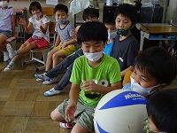 雨上がりの校庭は,いたるところにぬかるみがあります。そこで,クラスのみんなが楽しめる室内ゲームをしました。(写真は2年生)