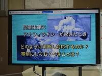 7月16日(金)今回は養護教諭が講師となり,「食物アレルギー緊急時の対応」をテーマに研修をしました。研修では,学校内での役割分担や緊急性が高いアレルギー症状があるか,5分以内に判断すること,エピペンの使い方などを行いました。
