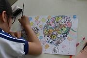 4年生図工の様子 投稿日時 : 2019/04/26 富勢西小学校管理者 4年生は図工の時間に,サインペンと色鉛筆を使って絵を描きました。 「友だち,たくさん集まって」を題材に,たくさんの同じ形を入れ物の中に詰め込んで描きます。できるだけ隙間を作らないようにして描くことがポイントです。子供たちはそれぞれ,「何の入れ物に,何を詰め込もうか?」を考え,思い思いに描き進めました。 下の写真は,風船や葉っぱ,お弁当箱などの中に,好きな物を詰め込んで描いている様子です。ユニークな作品が,たくさん仕上がりました! {{options.likeCount}} {{options.likeCount}}