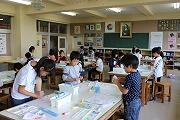 富西日記 令和元年度 全ての記事 全ての記事 アーカイブ 2026年3月 (0) 2026年2月 (0) 2026年1月 (0) 2025年12月 (0) 2025年11月 (0) 2025年10月 (0) 2025年9月 (0) 2025年8月 (0) 2025年7月 (0) 2025年6月 (0) 2025年5月 (0) 2025年4月 (0) 2025年3月 (0) 2025年2月 (0) 2025年1月 (0) 2024年12月 (0) 2024年11月 (0) 2024年10月 (0) 2024年9月 (0) 2024年8月 (0) 2024年7月 (0) 2024年6月 (0) 2024年5月 (0) 2024年4月 (0) 2024年3月 (0) 2024年2月 (0) 2024年1月 (0) 2023年12月 (0) 2023年11月 (0) 2023年10月 (0) 2023年9月 (0) 2023年8月 (0) 2023年7月 (0) 2023年6月 (0) 2023年5月 (0) 2023年4月 (0) 2023年3月 (0) 2023年2月 (0) 2023年1月 (0) 2022年12月 (0) 2022年11月 (0) 2022年10月 (0) 2022年9月 (0) 2022年8月 (0) 2022年7月 (0) 2022年6月 (0) 2022年5月 (0) 2022年4月 (0) 2022年3月 (0) 2022年2月 (0) 2022年1月 (0) 2021年12月 (0) 2021年11月 (0) 2021年10月 (0) 2021年9月 (0) 2021年8月 (0) 2021年7月 (0) 2021年6月 (0) 2021年5月 (0) 2021年4月 (0) 2021年3月 (0) 2021年2月 (0) 2021年1月 (0) 2020年12月 (0) 2020年11月 (0) 2020年10月 (0) 2020年9月 (0) 2020年8月 (0) 2020年7月 (0) 2020年6月 (0) 2020年5月 (0) 2020年4月 (0) 2020年3月 (10) 2020年2月 (15) 2020年1月 (13) 2019年12月 (21) 2019年11月 (35) 2019年10月 (29) 2019年9月 (22) 2019年8月 (2) 2019年7月 (16) 2019年6月 (20) 2019年5月 (17) 2019年4月 (16) 2019年3月 (1) 100件 1件 5件 10件 20件 50件 100件 3年生図工の様子 投稿日時 : 2019/04/26 富勢西小学校管理者 3年生の図工は,絵の具の使い方の学習から始まりました。 3年生になり,初めて図工室で学習をする3年生。図工室の使い方を確認した後,絵の具の使い方を学習しました。低学年でも絵の具は使っていましたが,改めてバケツやパレットの使い方,そして色の混ぜ方などを確認しました。 その後,教科書に載っている「絵の具と水のハーモニー」に取り掛かりました。今回はチューブから出した色をそのまま使わず,必ず自分のオリジナルの色を作ることを条件としました。「春の新色を作ろう!」をテーマにしたので,明るい色の作品が完成しました。 {{options.likeCount}} {{options.likeCount}} 4年生図工の様子 投稿日時 : 2019/04/26 富勢西小学校管理者 4年生は図工の時間に,サインペンと色鉛筆を使って絵を描きました。 「友だち,たくさん集まって」を題材に,たくさんの同じ形を入れ物の中に詰め込んで描きます。できるだけ隙間を作らないようにして描くことがポイントです。子供たちはそれぞれ,「何の入れ物に,何を詰め込もうか?」を考え,思い思いに描き進めました。 下の写真は,風船や葉っぱ,お弁当箱などの中に,好きな物を詰め込んで描いている様子です。ユニークな作品が,たくさん仕上がりました! {{options.likeCount}} {{options.likeCount}} 授業参観 投稿日時 : 2019/04/25 富勢西小学校 今年度最初の授業参観・懇談会が行われました。保護者の方も大勢来校し,どの教室も子供たちのやる気にみちあふれていました。授業参観の後に行われた、懇談会,そしてPTA総会にもたくさんの方が参加してくださいました。足元の悪い中,ありがとうございました。今年度も1年間どうぞよろしくお願いいたします! {{options.likeCount}} {{options.likeCount}} 5年生図工の様子 投稿日時 : 2019/04/24 富勢西小学校管理者 5年生の最初の図工は,「『かくれんぼさん』をさがせ!」です。学校の風景に溶け込むように,生き物の色や模様を工夫して描きました。 生き物を隠す場所とそっくりな色を作るために,何度も何度もパレットで絵の具を混ぜて,微調整をしました。完成した作品は,図工室や音楽室,そして廊下に貼りました。何も知らずに通りかかった4年生は,あまりにも5年生が描いた生き物が風景に馴染んでいたので,ビックリしていました。 さて,問題です。以下の4枚の写真の中には,児童の作品が隠れています。どこに生き物が隠れているか,わかりますか?? {{options.likeCount}} {{options.likeCount}} 6年生図工の様子 投稿日時 : 2019/04/23 富勢西小学校管理者 新学期が始まり,今日は初めての2時間続きの図工です。 6年生は,「感じたままに花」の題材に取り組みました。「花を描きましょう。」と言うと,ほとんどの子は画用紙の下に地面を描き,そこから茎と葉を描いて,上に花を描きます。でも,理科ではなく図工なので,感じたままに自由に描いてOKとしました。 子供たちは不思議な色,不思議な形の花を,伸び伸びと描きました。今回濃い色の色画用紙を使ったので,白色がとても映えています。6年生らしく,筆の力の入れ具合や動かし方を工夫する様子も見られました。 画用紙一面に,ステキな花が咲き誇っています。 {{options.likeCount}} {{options.likeCount}} 3年生リコーダー講習会 投稿日時 : 2019/04/20 富勢西小学校管理者 小学校では3年生から,リコーダーの学習が始まります。今日は講師の方をお招きし,リコーダー講習会を実施しました。 ほとんどの子は,リコーダーに触れるのは今日が初めてです。始めに正しいリコーダーの持ち方や,息遣いについて習いました。次に,いよいよリコーダーに息を入れます。鍵盤ハーモニカを吹く感覚で息を入れると,どうしても息が強く,音が裏返ってしまいます。優しく吹くことがポイントだと教えて頂