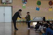 1年生を迎える会 投稿日時 : 2019/04/19 富勢西小学校管理者 1年生が入学してから,1週間が経ちました。元気いっぱい1年生!毎日楽しく学校生活を送っています。 そんな中,本日は「1年生を迎える会」を行いました。年度始めの忙しい中ですが,児童会役員の皆さんが,毎日計画や準備を進めてくれました。 2年生が作ってくれたメダルを首から提げて入場した1年生。少し緊張した様子です。でも,児童会役員の皆さんが考えてくれたレクをする中で,そんな緊張はすぐに吹き飛んだようです。始めに行ったのは,「富勢西小〇×クイズ」です。クイズを通して,富勢西小にまつわるクイズを解く中で,富勢西小について色々知ることができました。次に,「猛獣狩りゲーム」です。一般的にはお題となる動物名の文字数と同じ人数を集めてグループを作りますが,今回は「1グループに3学年以上が入ること!」という富西ルールが加わっています。1年生だけでなく全学年が楽しめるよう,工夫されていました。 1年生の笑顔がたくさん見られた,楽しい時間となりました。 {{options.likeCount}} {{options.likeCount}}