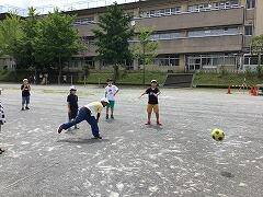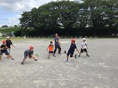寒さに負けず元気に頑張る2年生の富西っ子たち体育ではオリジナルルールのキックベースで,みんなで汗を流しました
