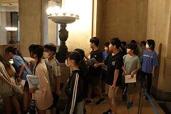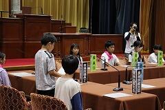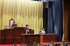 立候補した児童の演説をしっかりと聞き,参加した3年生以上の富西っ子たちが投票用紙に〇を付けて,選挙管理委員会児童(現児童会役員)の持つ投票箱に1票を投じました