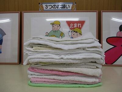 宿連寺桜寿会様から,心のこもったたくさんの雑巾をいただきました。雑巾は教室や行事等で使わせていただきます。いつもながらの温かい御配慮に心より感謝いたします。